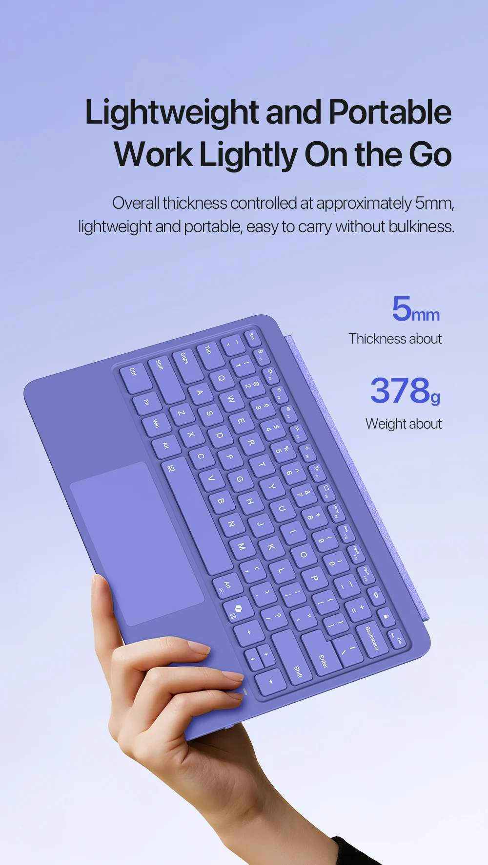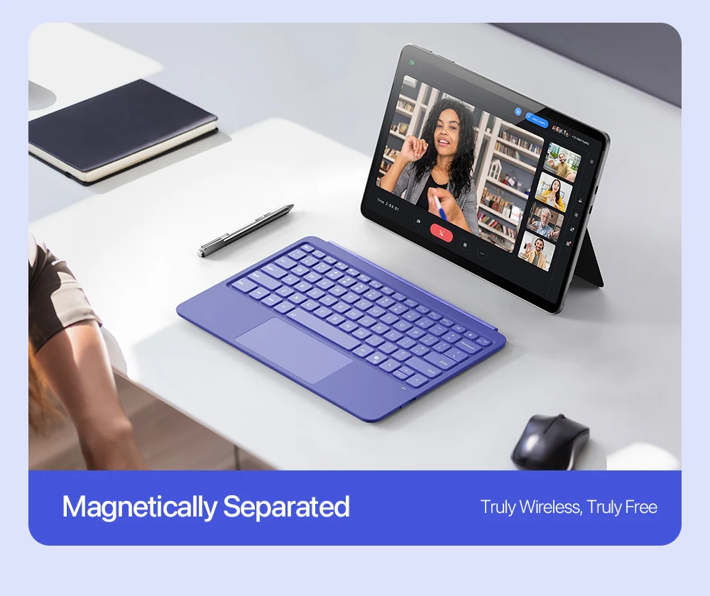 Enhance your productivity with this ultra-slim detachable keyboard, crafted for seamless integration with tablets and 2-in-1 devices. Featuring a smooth, responsive key layout and precision touchpad, it delivers a laptop-like typing experience wherever you go.
