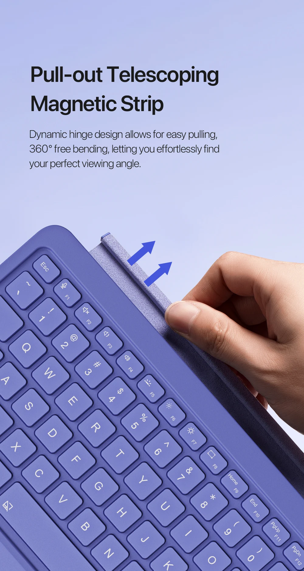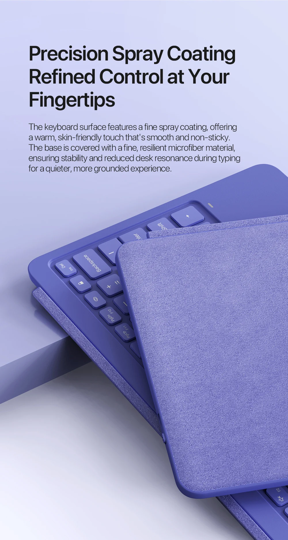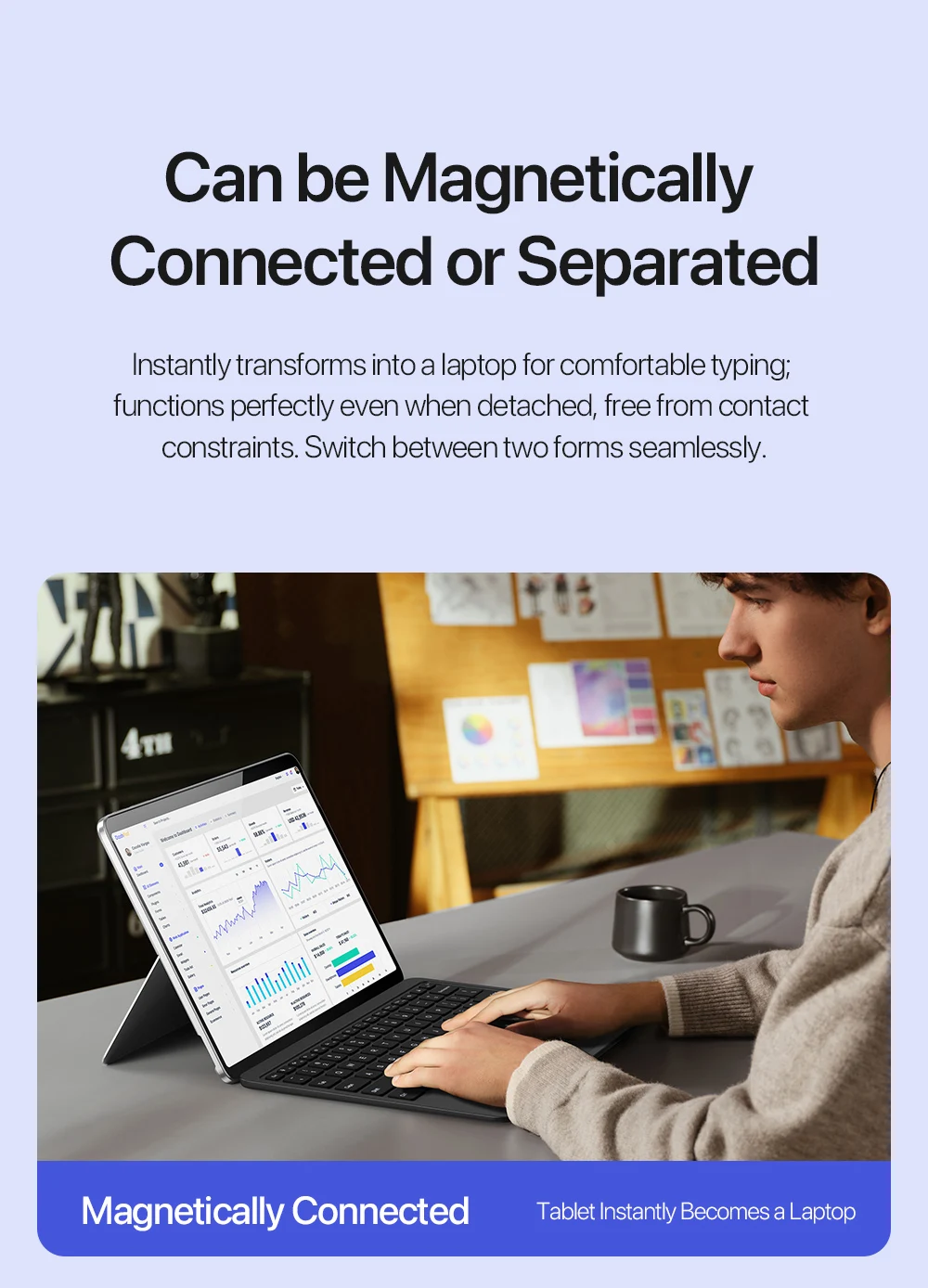 The magnetic connection ensures quick attachment and stable use, while the lightweight design makes it ideal for travel or mobile work setups. Built with durable materials and a matte finish, this keyboard combines elegance, comfort, and reliability in one compact form.